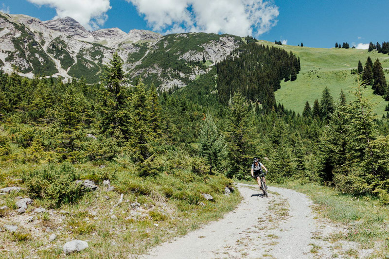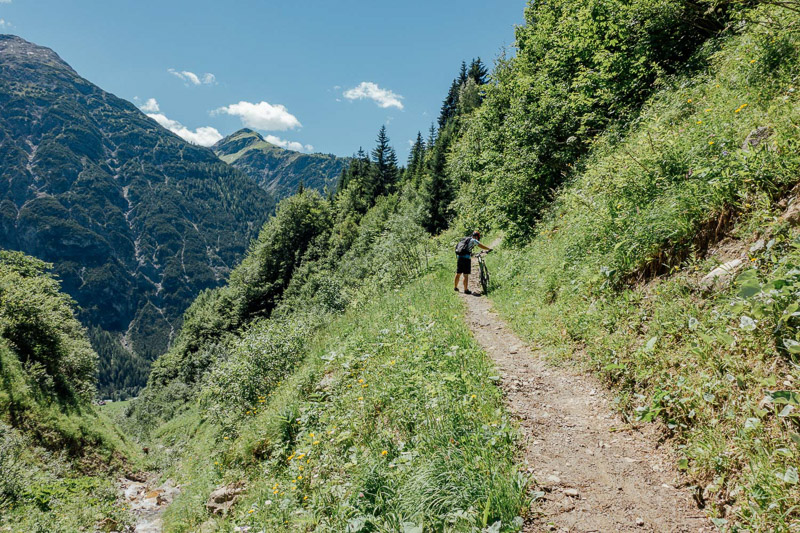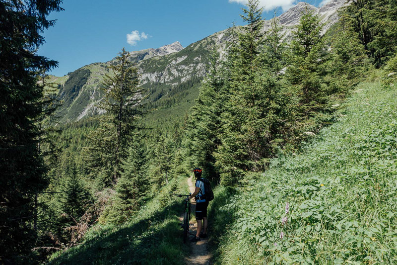 Bewertung: Vor allem Holzgau dürfte einer der bekannteren Orte des Lechtals sein, da hier der Europäische Fernwanderweg E5 kreuzt, zudem ist dort auch Ausgangspunkt vieler Touren in die Allgäuer bzw. Lechtaler Alpen. Kurzer, knackiger Anstieg in Holzgau Richtung Hängebrücke, hier lohnt sich aber ein Abstecher. Auf dem Hägerauer Höhenweg gibt es einige Schiebepassagen (u.a. Walchenbach-Querung) aufgrund Steilheit oder schlechtem Untergrund vor allem am Wiesentrail. Der Höhenweg geht später in Asphalt über auf Höhe Ebene.