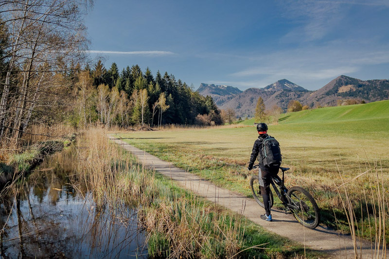 Bewertung: Durch das Chiemgauer Land führt uns diese landschaftlich sehr schöne Tour. Mit dem Bärnsee, Aschau, Schwarzen- und Riesenberg und zur Hochriesbahn wechseln sich lange Auffahrten mit steilen Abfahrten ab. Hier bieten sich immer wieder tolle Aussichten auf die umliegenden Berge. Zurück geht es parallel zur Autobahn auf dem Radweg über Frasdorf nach Bernau.