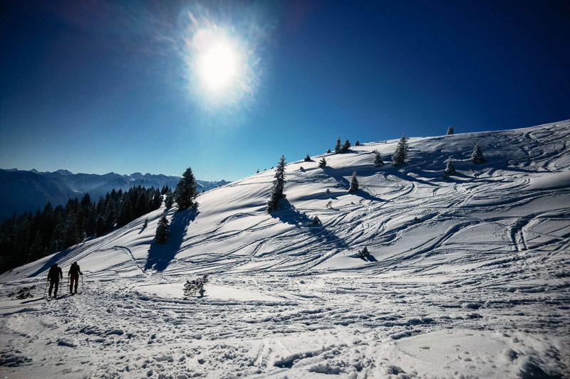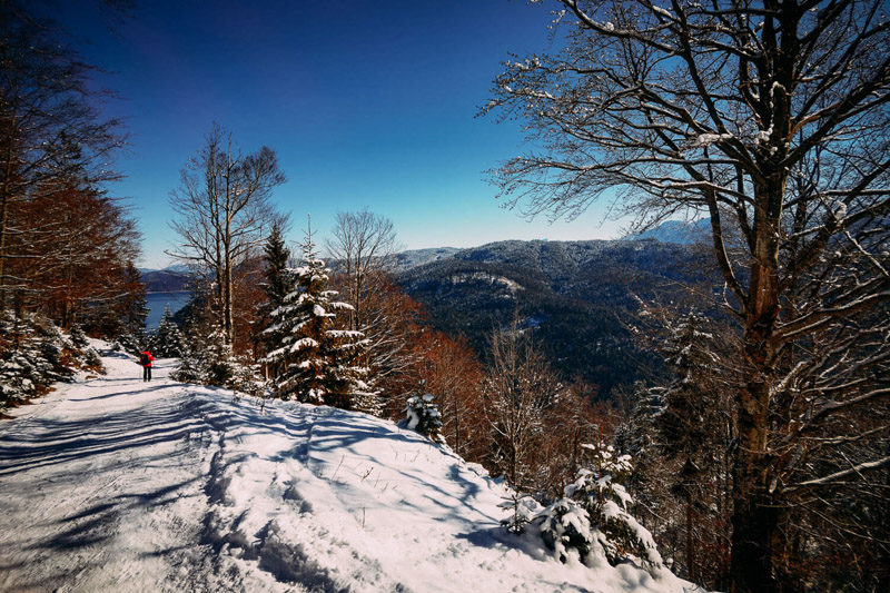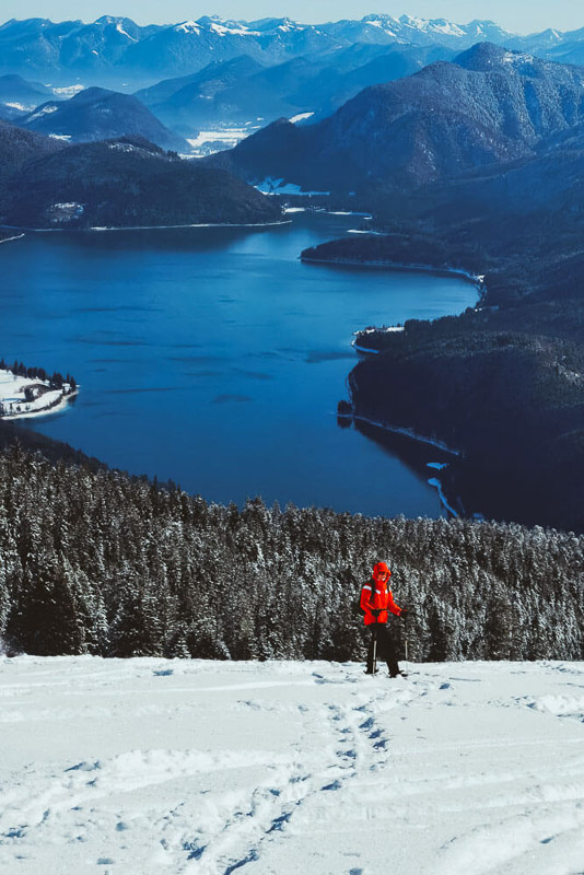 Bewertung: Auch wenn die Tour relativ lawinensicher ist, sollte die Lawinenlage im Winter beachtet werden! Die Route verläuft überwiegend auf Forstwegen auf dem Weg 475. Das letzte Stück befindet sich ab der Waldgrenze bis zum Gipfel im freien Gelände. Vor allem auf dem Rückweg kann im Waldstückbereich reger Skiabfahrtsverkehr herrschen. Gute Kondition vorausgesetzt (ca. 1000 Hm auf 6 km) und GPS von Vorteil, da wir trotz diesem ein Stück neben dem eigentlichen Weg aufgestiegen sind (die steilere Variante über den Sommerweg). Ansonsten ist es möglich auf der Forststraße an der Forsthütte zu gehen. Die Aussicht am Gipfel ist grandios, liegen einem doch der Walchensee und die umliegenden Bergketten quasi zu Füßen. An diesem Tag herrschten eisige Temperaturen (-15 Grad), und dementsprechend frostig bließ uns der Wind um die Nase am Gipfel.