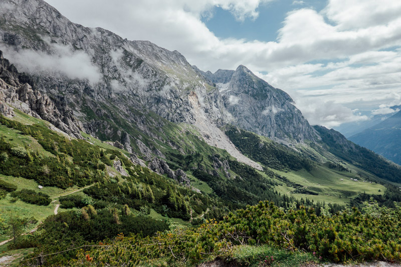Tourenverlauf: Hinterbrand – Halbzeit – Wasserfallalm – Mitterkaseralm – Carl-von-Stahl-Haus – Schneibstein – Seeleinsee – Königsbachalmen – Hinterbrand