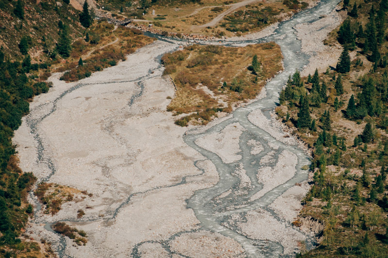 Tourenverlauf: Kaunertaler Gletscherstraße, Parkplatz – Gletscherlehrpfad – Zustieg Gepatschgletscher 2019 – Gletscherlehrpfad – Kaunertaler Gletscherstraße – Riffelbach – Obere Birg Alm – Gepatsch Alm – Kaunertaler Gletscherstraße, Parkplatz