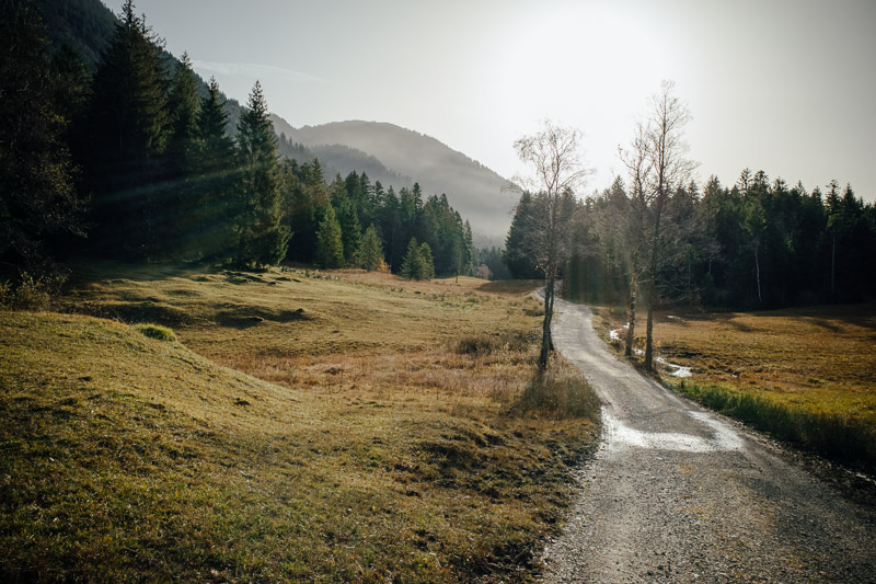 Tourenverlauf: Lenggries – Hohenburgstraße – Mühlbach – Laßeln – Weg 624 – Weg 631 – Röhrlmoos Alm – Holz – Mühlbach – Hohenburgstraße – Lenggries