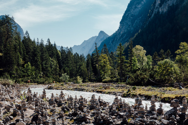 Bewertung: Eine mit landschaftlichen Highlights gespickte Tour durch das Karwendel von Bayern nach Österreich. Die knappen 350 Hm auf 4 km ab der Gleirschhöhe haben Rampen bis 20% und kosten einiges an Kraft. Die verdiente Pause im Hallerangerhaus entlohnt dafür. Wer noch Reserven im Tank hat, kann noch einen Abstecher zur Hallerangeralm machen.