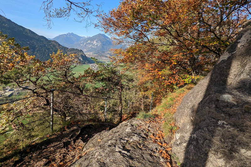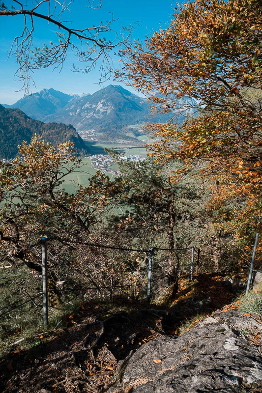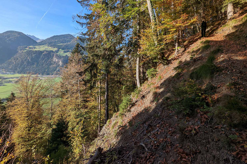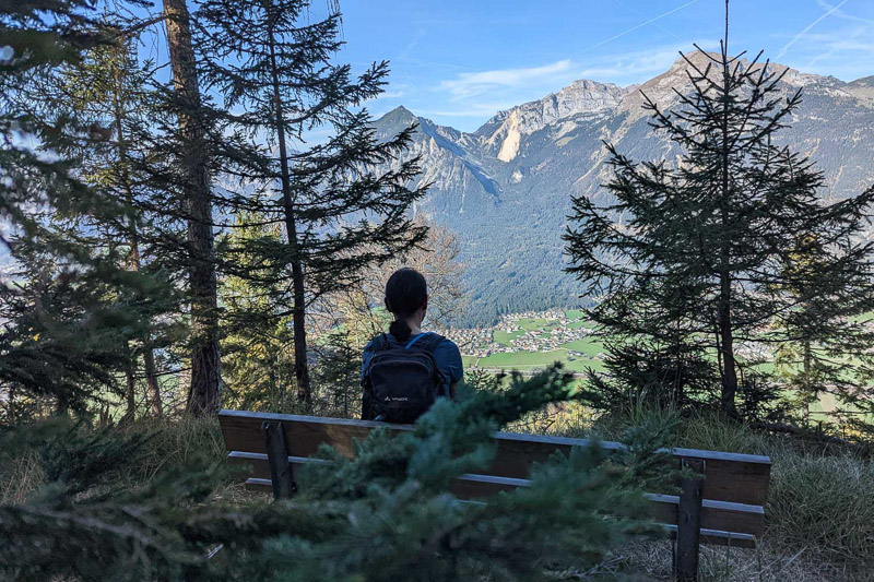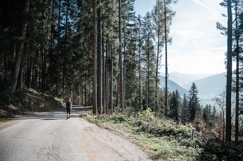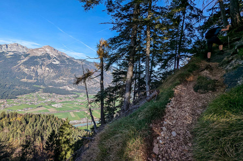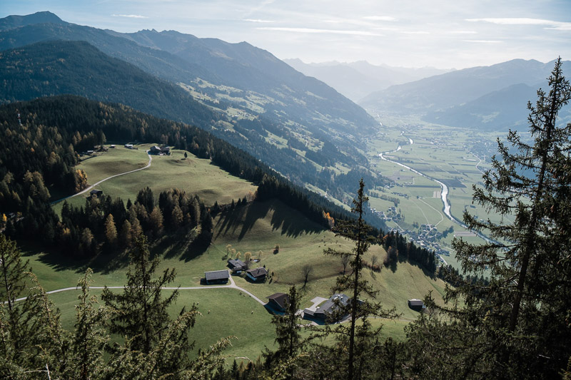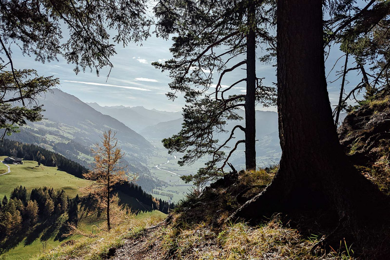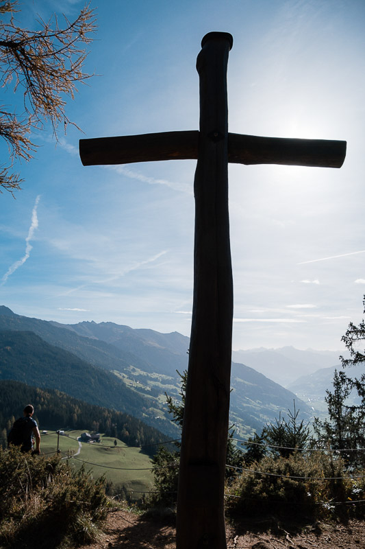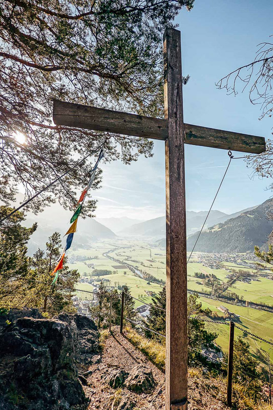 Bewertung: Nach ca. einem Kilometer bietet sich ein Ausblick auf dem Spitzerköpfel an. Der Aufstieg ist kurzzeitig drahtseilversichert. Danach geht es über verwurzelte Waldpfade und wenig Fostwegen zum Reither Kogel. Der Panoramaweg wird oben enger und steiler. Da hier keine keine Absicherungen vorhanden sind, ist etwas Konzentration vonnöten. Am Kreuz des Reither Kogel bietet sich ein einmaliger Blick über das Zillertal. Der Abstieg erfolgt über anfangs steile Waldpfade, danach auf Teerstraßen zurück zum Augsangspunkt.