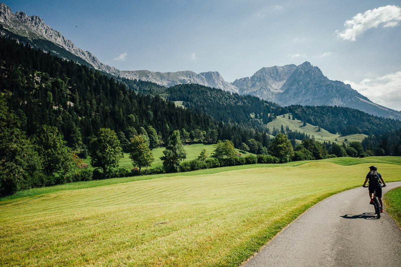 Tourenverlauf: Scheffau – Oberfeld – Wegscheid – Hinterstein – Bärnstattkapelle – Hintersteiner See – Schiestl-Ried – Kaiseralmen – Hintersteiner See – Strandbad – Marienkapelle Gut Alte Mühle – Grub – Sonnwies – Stallfeld – Kaiseralm – Scheffau