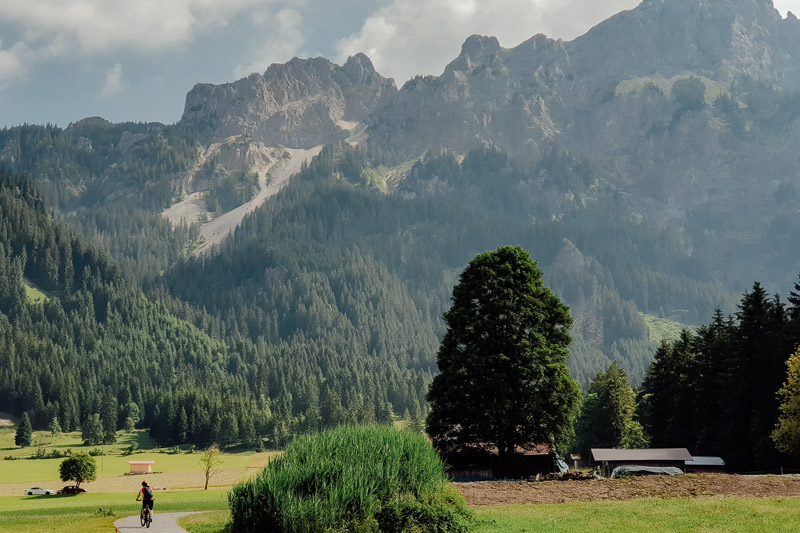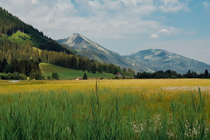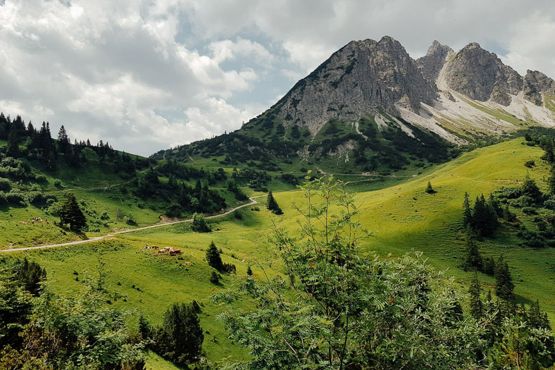 Tourenverlauf: Grän – Am Kohlbichl – Seestraße – Haldensee – Krinneralpe – Rauth – Meraner Steig – Krinnenalpe – Edenalpe Nesselwängle – Gräner Ödenalpe – Schmitte – Haldenseehaus – Haldensee – Grän