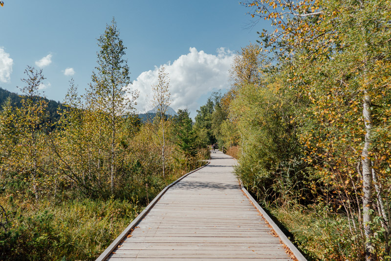 Bewertung: Kurze idyllische Wanderung um den beschaulichen Wildsee mit Möglichkeit zur Moorwanderung im Reither Moor. Entlang der Strecke gibt es genügend Sitzgelegenheiten sowie Einkehrmöglichkeiten. Der Aussichtspunkt am Pfarrhügel in Pfarrerbichl bietet wunderschöne Blicke auf Seefeld und die umliegenden Berge.