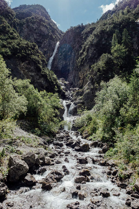 Zum Hörgauer Wasserfall, Bergheim Hermine und Memminger Hütte Materialseilbahn