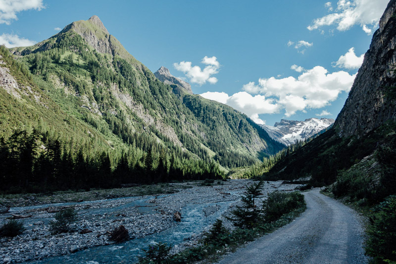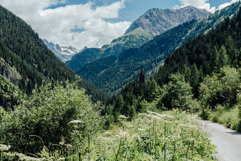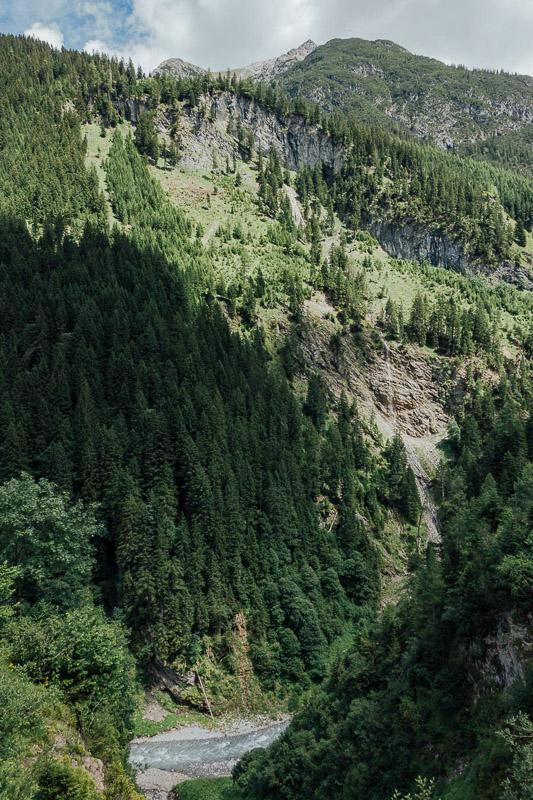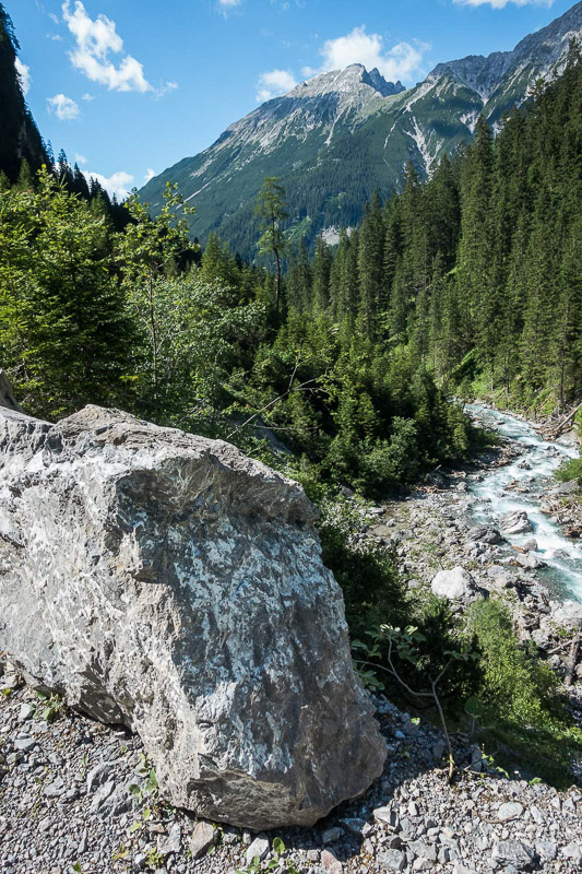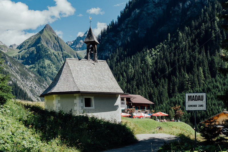 Tourenverlauf: Elbigenalp – Stockach – Holzgau – Hörgauer Wasserfall – Holzgau – Stockach – Elibenalp – Waldfriedhof Klotzkapelle – Madail – Schiacher Herrgott Schnatterer – Jägers Kurva – Schwonder Brügga – Geigers Schwond – Huach Brugga – Egger Brugga – Metzgers Wald – Maria-Hilf-Kapelle – Berggasthaus Hermine, Madau – Parseierbach – Blick zur Saxerwand – ehem. Seelealm – Materialseilbahn Memminger Hütte – Retour bis zur Waldfriedhof Klotzkapelle und direkt nach Elbigenalp